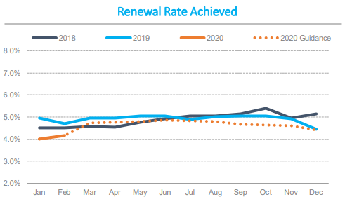 Was it really still true in 1987 that renewing tenants were all getting below-market offers? I don’t know, but it certainly wasn’t true by 2019 — at least, not for large and sophisticated landlords like the apartment REITs. In fact, I can think of only one REIT with a stated policy of capping renewal offers at market, rather than trying to squeeze out a little more.
