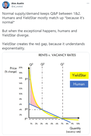 Of course this isn’t the only thing the software does, or even the first. In fact, I think the early years of implementation were more focused on pricing vacancy, which is a more direct analog to the travel sectors where this software was first developed. So that may have been more about maximizing the landlord’s informational edge around real-time demand indicators like leasing traffic — and some of those gains may have come more from competing landlords than from tenants.